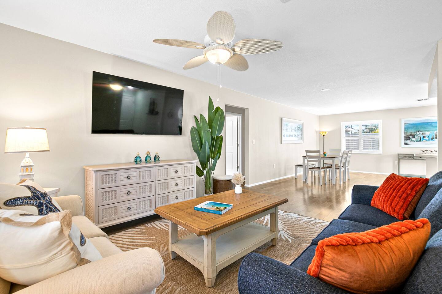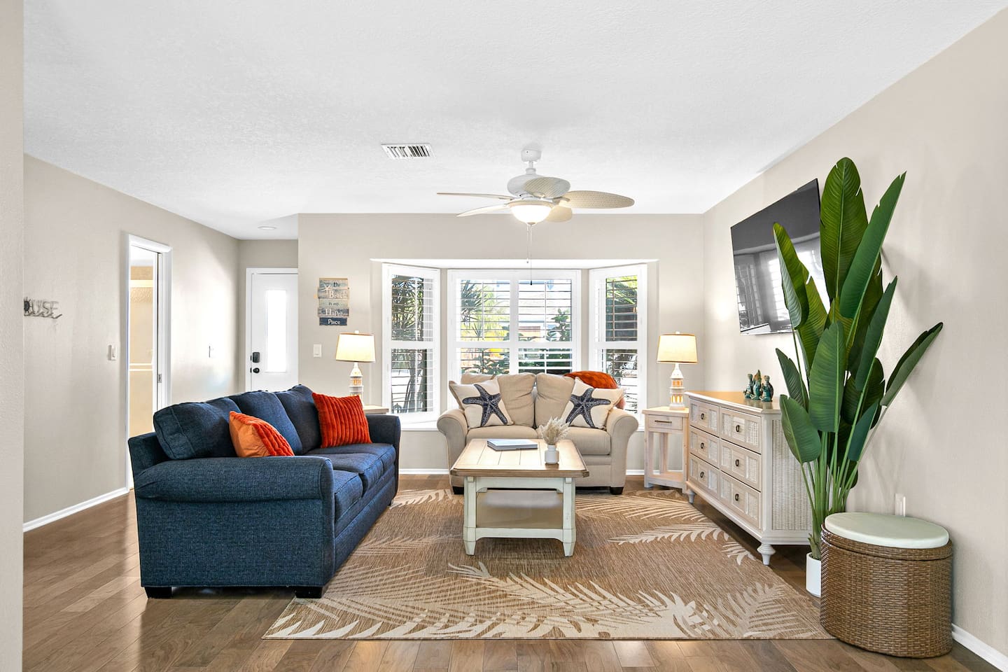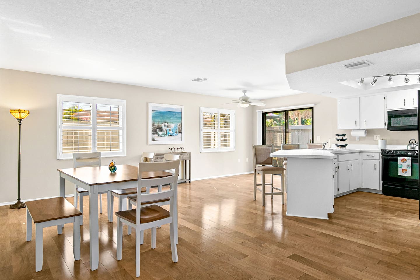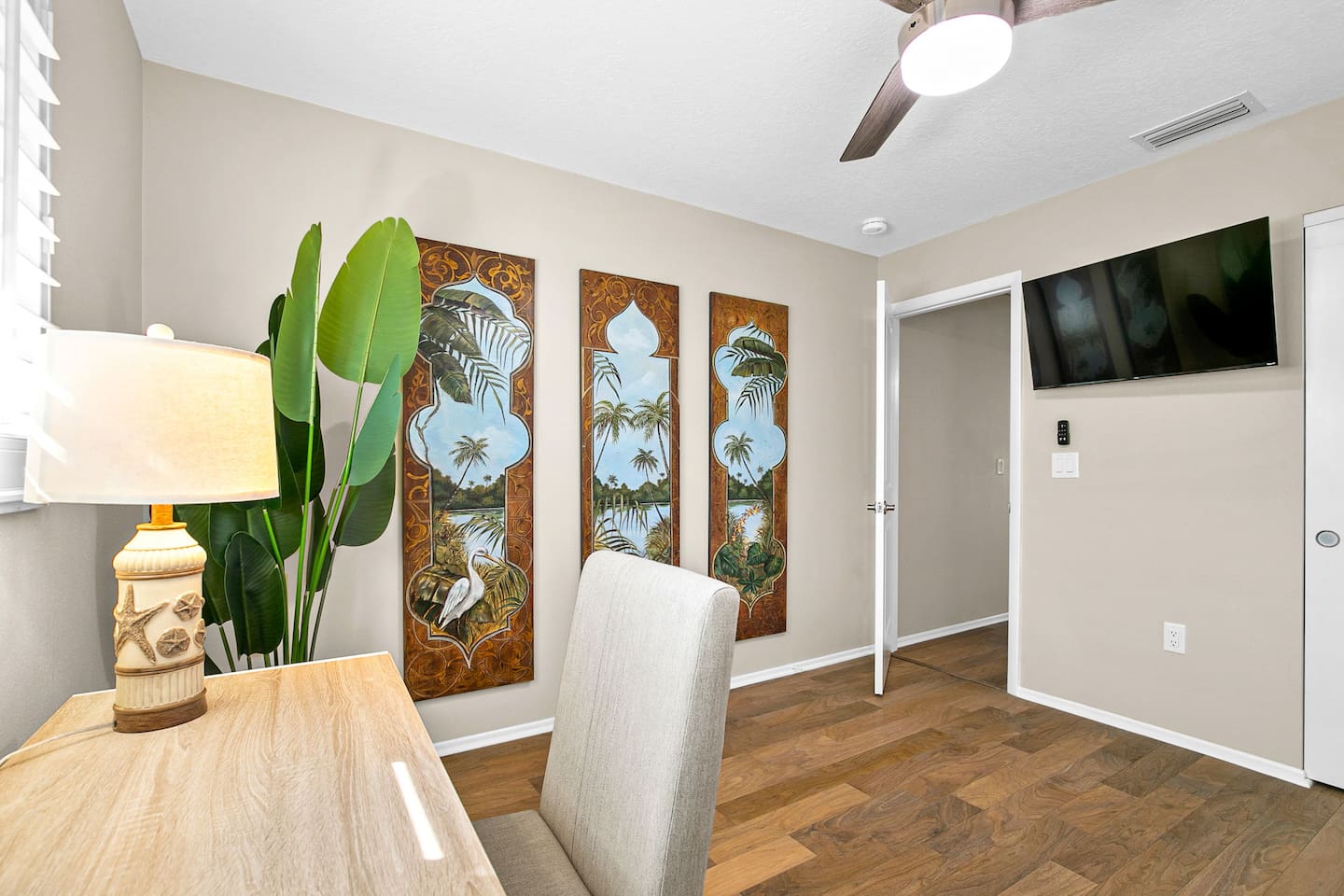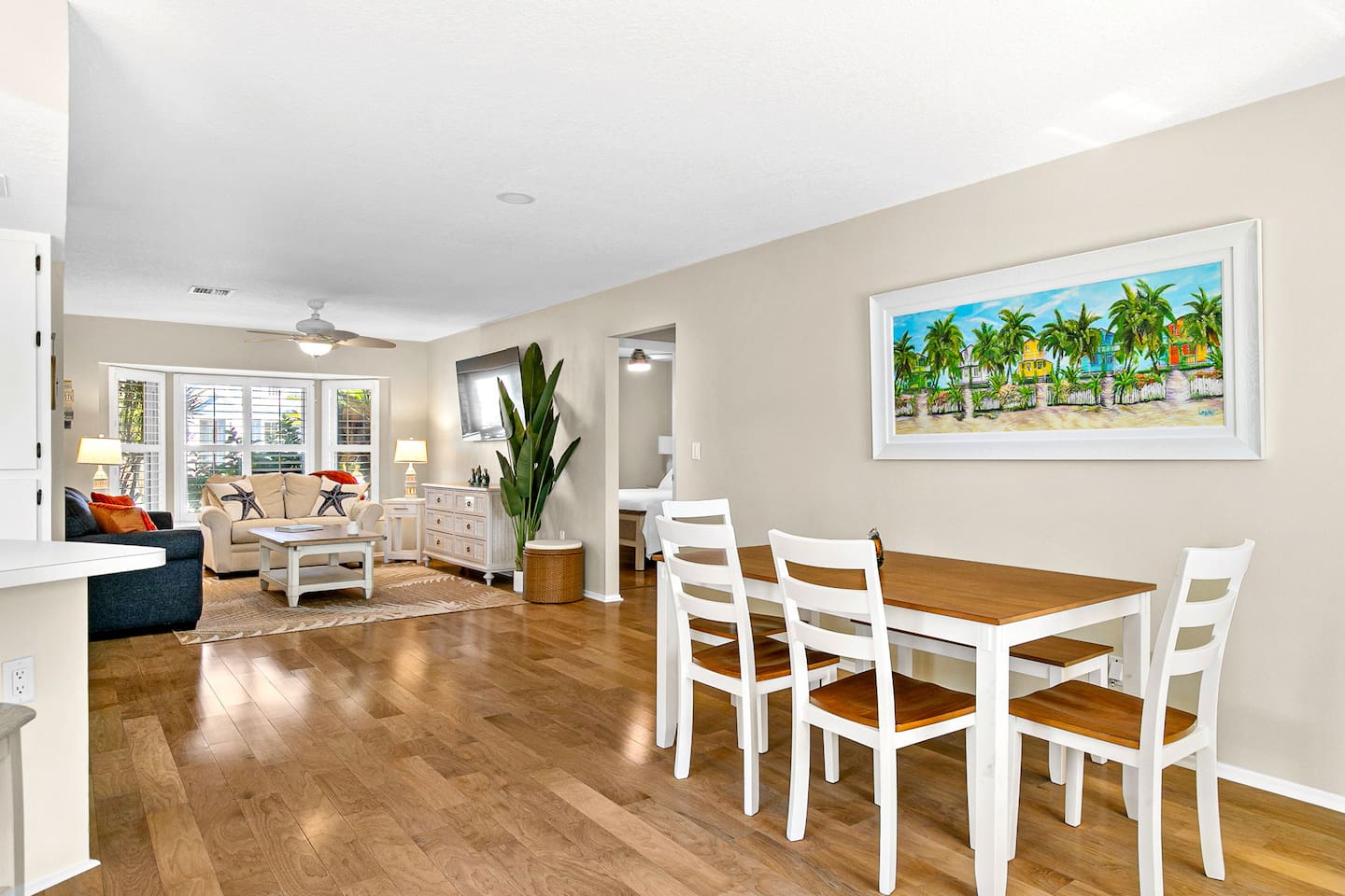 Just a 2-minute walk to the beach, this bright Venice Island home offers an airy layout, a king bedroom, and a second room with a Murphy bed and workspace. It also features a whole-house water filter plus reverse-osmosis drinking water at the kitchen sink. Enjoy sunsets, beach yoga, shark-tooth hunting, or a leisurely stroll around this golf-cart-friendly island. Walk 20 minutes to downtown for shops, dining, live music, and the Saturday farmers market. Many parks and playgrounds to explore.